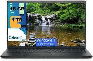 Dell Inspiron 15 Laptop, 15.6" HD Display, Intel Celeron N4020 Dual-Core Processor, Intel UHD Graphics, 16GB DDR4  1TB PCIe SSD, Wi-Fi and Bluetooth, Windows 11 Pro