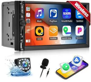 7 Wireless CarPlay Double Din Car Stereo,FM Car Radio,Bluetooth 5.2,IPS Touchscreen 1024 * 600, Backup Camera,EQ Audio,Dual USB+Type-c Charging,Subwoord,Android Auto,Navigation,CarPlay MP5