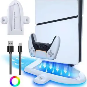 PS5 Slim Cooling Station with RGB LED Charging Dock - 3-Level Fan Cooling, Dual PS5 Controller Charger