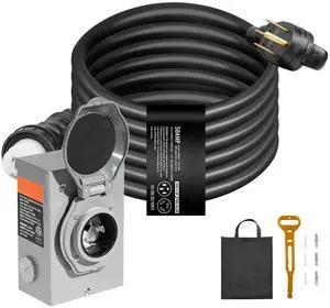 50 Amp Generator Cord and Power Inlet Box Kit, 15FT, NEMA 14-50P/SS2-50R STW 6/3+8/1 AWG Generator Power Cord with Twist Lock Connector, Pre-Drilled Inlet Box for Generator to House, ETL Listed