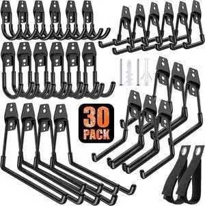 30 Pack Heavy Duty Garage Hooks,Solid Steel Wall Mount Hangers,with Anti-Slip Coating,for Hanging and Organising Ladder,Bike,Ropes,Broom,Garden,Yard and Power Tools