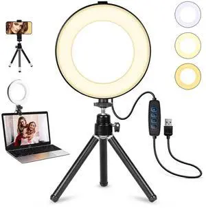 Video Conference Lighting Kit, Ring Light Clip on Laptop Monitor, 6" Dimmable LED Circle Selfie Light for Zoom Meeting/Remote Working/Zoom Calls/Live Streaming/Video Recording