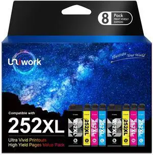 Uniwork 252XL Ink Cartridges 8 Pack, Remanufactured for 252XL Ink Cartridge for Epson Printer 252 XL 252XL Ink Cartridges Combo Pack for Workforce WF-3640 WF-3620 WF-7110 WF-7710 WF-7720 WF-7620 Ink