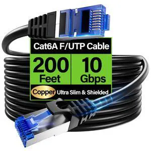 Cat6A Ethernet Cable Shielded 10Gbps 200 ft, Slim Shielded (F/UTP) Ethernet Cable Cat 6, Flexible 28AWG Bare Copper Cat6 Cable, Space-saving Cat 6a Network Cable for Server, Data Center, Black