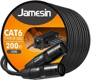 Jamesin CAT6 Shielded Ethercon Cable, 200 Feet, with Booted Rj45, Tactical Locking Ethernet, and Converta-Shell Connectors, for Studio Setups, Touring, Stage Production, Concerts & Other Applications