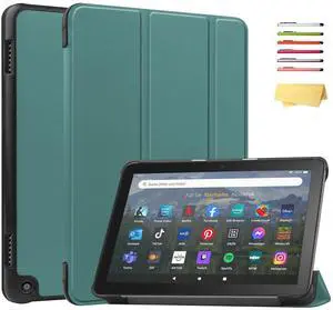 Case for Kindle Fire HD 8 & Fire HD 8 Plus Tablet (12th/10th Generation, 2024/2022/2020 Release) 8",UUcovers Trifold Stand Hard Bumper Shockproof Smart Cover with Auto Wake/Sleep,Dark Green