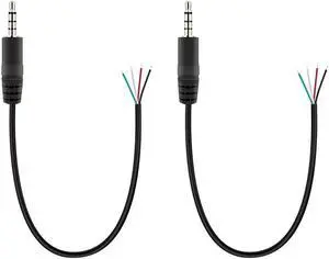 15cm 1/8" 3.5mm TRS Jack Audio Flat Cable, 2 Pack, Straight Male to 90 Degree Angle Male 3.5mm 3 Pole Stereo Plug Headphone Headset AUX Cord