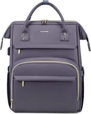 LOVEVOOK Leather Laptop Backpack for Women 18 inch,Travel Backpack Purse Nurse Teacher Backpack Computer Laptop Bag,Professional College Business Work Bags Carry On Backpack with USB Port,Grey Purple
