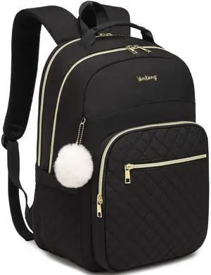 VANKANY Laptop Backpack Women School Backpack for High School Teen Girls, Water Resistant College Bookbag with Charging Hole for Travel Work, Black