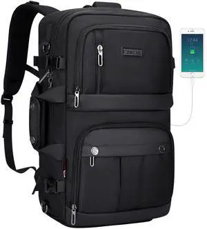 Ponhog Travel Backpack for Men, 50L Carry On Flight Approved Convertible Duffle Bag with Shoe Compartment, 17 inch Laptop Luggage with USB Charging Port for Weekender Hiking, Black