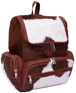 Cowhide Genuine Leather Backpack with Laptop Compartment Travel Bag, Western Diaper Bag for Women (Tan panda)