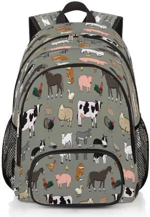 TropicalLife Cute Farm Animals Rooster Cow Bookbag 18 Inch School Backpack Teens Girls Boys Schoolbag Shoulder Computer Hiking Gym Travel Casual Travel Daypack