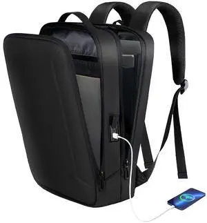 MANETTA Slim Laptop Backpack for Men, Business Backpack with Charging Port, Tech Backpack for 15.6 inch Laptop for Work (black semi-hard shell)