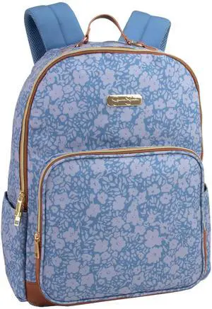 Jessica Simpson Womens Designer Laptop Backpack with Side Pockets, Padded Straps ^^ Classic Modern Backpack for Women (Bold Blue Flowers), Large