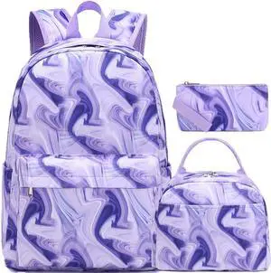 Jumpopack Girls Backpack with Lunch Box 16inch Laptop Backpacks for Teen Girls School Backpack School Bag Bookbag (Marble Purple)