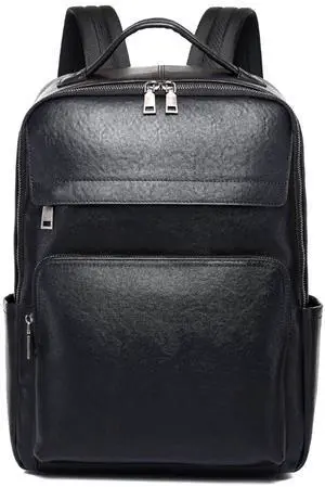 Wesccimo Veg-Tan Genuine Leather Backpack for Men Multi-Functional 15.6" Laptop Backpack, Black Business Travel Luxury Backpack Work Daypack