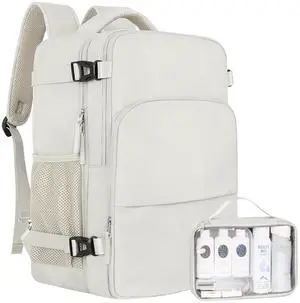 Sinaliy Travel Backpack, Carry on Flight Approved Backpack with Multi-Pockets, TSA Waterproof 17.3inch Laptop Backpack, Personal Item Travel Bag for Men Women, Beige