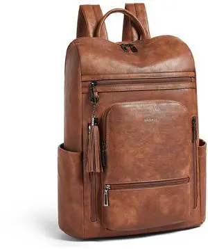 tiamyi Computer Backpack for Women Soft Leather Back pack with 15.6 inch Laptop Compartment, Designer Ladies Travel Backpack, Coffee