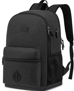 Liokesa Casual Laptop Backpack,School Backpack Large Bookbag with USB for High School College Students Office Business, Black
