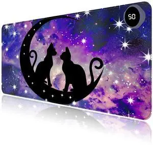 Heated Mouse Pad with 3 Levels Heated & 3 Hours Auto Shut-Off Mouse Pad for Warming Hands in Office Home, 31.5" x 13"Large Safe Desk Mat Hand WarmerCute Space Cat