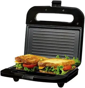 Electric Panini Press Grill with Nonstick Plates, LED Indicator Lights, Thermostat Control, Cool Touch Handle, Compact Sandwich Maker Perfect for Cooking Breakfast, Snacks & More, Black GP0401B