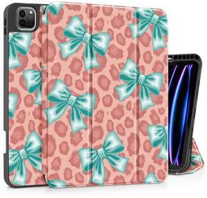 May Chen for iPad Pro M2 12.9 inch Case 6th/5th/4th/3rd Generation 2022 2021 2020 2018, Trifold Stand with Auto Wake/Sleep Soft TPU Protective Stand Back Cover, Mint Green Bow