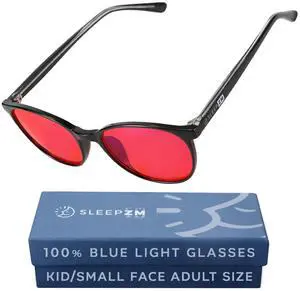 Sleep ZM 100% Blue + Green Light Blocking Glasses for Kids + Small Face Women + Men - Better Sleep + Anti Eye Strain Protection - Computer Screens & Gaming - Wayfarer - 100% Night-timeMax Red Lens