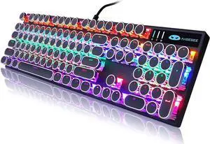 Camiysn Typewriter Style Mechanical Gaming Keyboard, Black Retro Punk Gaming Keyboard with RGB Backlit, 104 Keys Blue Switch Wired Cute Keyboard, Round Keycaps for Windows/Mac/PC