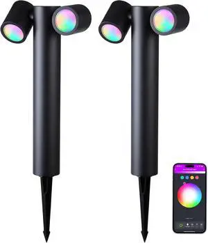4 Pack RGB LED Flood Light with Stake, Outdoor DIY Color Changing Stage Party Lights 150W Equivalent 2700K-6500K White Light Dimmable RGB Colored Spotlighs Uplight for Events by App Control