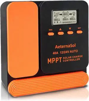 Solar Charge Controller 40A Charge Controllers 12/24V MPPT Solar Charge Controller with Adjustable LCD, Timer, Dual USB, Max Input 100V for LiFePO4/AGM/GEL/FLD Batteries (Orange)