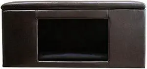 Homepop Home Decor | Button Tufted Leatherette Pet Bed & Bench | Faux Leather Pet Bed | Decorative Pet Furniture (Brown) 38 x 18 x 18