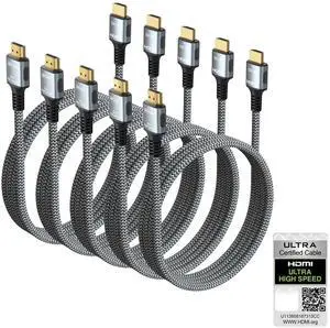 8K HDMI Cable 6FT 10-Pack, High Speed 48Gbps HDMI 2.1 Cord, Support 8K@60Hz & 4K@120Hz, HDR10+, SBTM, 12bit, 3D, eARC, Dolby Atmos, DTS:X, HDCP 2.3 for TV, Monitor, Apple TV, Roku, Soundbar, PS5, Xbox