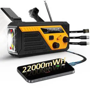 Emergency Crank Radio 22000mWh AM/FM NOAA Weather Radio with 4 Charging Cables, Flashlight, Reading Light, SOS Alarm, Phone Charging Hand Crank Radio for Home Outdoor Emergencies.