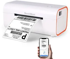 Soonmark Bluetooth Thermal Label Printer, Wireless 4x6 Shipping Label Printer for Small Business Shipping Packages, Compatible with iPhone, Android, Mac, Windows, Etsy, Ebay, Shopify, USPS (White)