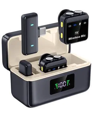 Mic Mini (2 TX + 1 RX + Charging Case), Wireless Lavalier Microphone for iPhone/Camera/Android, Ultralight, Detail-Rich Audio, 48h Use, Noise Cancelling, Automatic Limiting, Vlog, Streaming