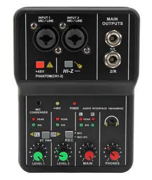 Mini Audio Mixer, 2 Channels USB Portable Live Sound Card Sound Board Console System with 48V Phantom Power, 16 BIT 48KHZ DJ Mixer, for Music Recording Karaoke Streaming Gaming Youtube PC- Brand: Diydeg