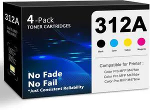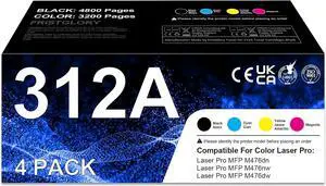 312A Black Cyan Magenta Yellow Toner Cartridge Replacement for HP 312A Toner for Color Laser Pro MFP M476dn M476dw M476nw Printer , (4 Pack,CF380A,CF381A,CF382A,CF383A)