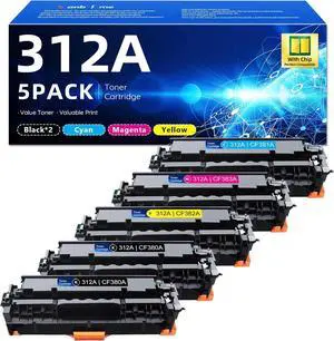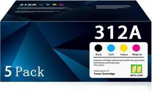 312A Toner Cartridges ( 5-Pack , with Chip) Replacement for HP 312A 312X CF380A CF381A CF382A CF383A Work with Color Pro MFP M476 Series (2BK/1C/1Y/1M)