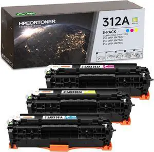 312A Cyan Magenta Yellow Toner Cartridges 3 Pack (with Chip) Replacement for HP 312A Color Toner for Color Pro MFP M476dw M476dn M476nw Series (CF381A CF382A CF383A)
