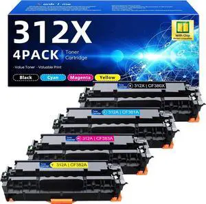 312X Toner Cartridges 4 Pack High Yield with Chip Replacement for HP 312X CF380X Works with Color Pro MFP M476dn M476dw M476nw Printer Ink (Black Cyan Magenta Yellow)
