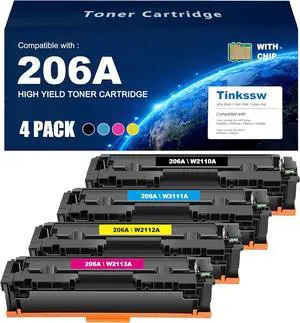 4 Pack New Black Cyan Magenta Yellow Toner Cartridge With Chip For HP 206A W2110A - W2113A Compatible For Use With HP Color LaserJet Pro M255dw M255nw MFP M282nw 283fdn 283cdw 283fd
