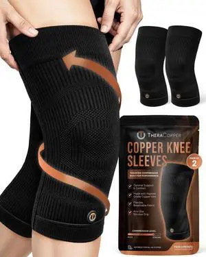 Copper Knee Brace for Men & Women (2 Pack) Non-Slip Compression Copper Knee Sleeve for Arthritis, Knees Pain Relief, Swelling, Anti inflammatory and Recovery Support (Large)