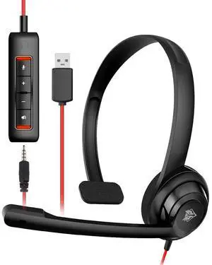 HW02 USB Headset with Microphone Noise Cancelling &in-line Control, Ultra Comfort Computer Headset for Laptop pc, On-Ear Wired Office Call Center Headphone for Boom Skype WebinarsBlack