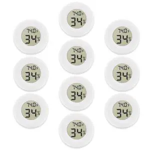 10-Pack Mini Thermometer Hygrometer, Small Digital Electronic Temperature Humidity Meters Gauge Indoor LCD Display for Greenhouse, Garden, Cellar, Fridge, Mason Jar(White)