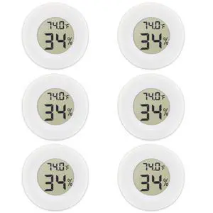 6-Pack Mini Round Hygrometer Thermometer Digital LCD Monitor Indoor Outdoor Humidity Meter Gauge Temperature for Humidifiers Greenhouse Reptile Fahrenheit Celsius White