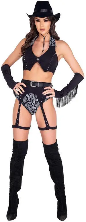 Roma Costume 5pc Wild West Babe, Black/Silver, L