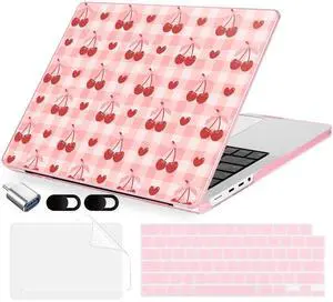 MecBevia Compatible with MacBook Pro 14 inch Case for M5 M4 M3 M2 M1 Pro/Max Chip (2026-2021), Hard Shell Cover with Keyboard Cover, Screen Protector, Webcam Cover & Type-C OTG, Pink Cherry Check