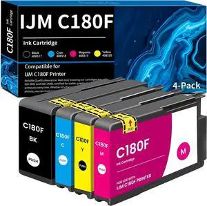 IJMC180F Ink Cartridges 4-Pack IJM C180 C180 Ink Set 408517 408518 408519 408520 Replacement for Ricoh IJM C180F Printer Ink (Black Cyan Magenta Yellow)