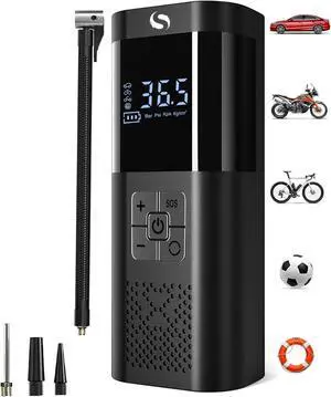 Tire Inflator Portable Air Compressor, 150 PSI Cordless Air Pump, Dual Power 6000mAh, 12V DC Car Plug, Fast Inflation 24L/Min, Auto Shut-Off, LED Light, 4 Preset Modes for Car, Bike, Motorcycle, BallsLimited time offer, ends 03/22