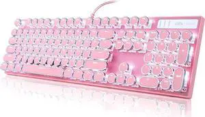 MageGee Typewriter Mechanical Gaming Keyboard, Retro Punk Purple Round Keycaps, 104 Keys LED White Backlit Wired Keyboards for Laptop MAC PC Gamer, with Magnetic Wrist Rest, Blue Switch